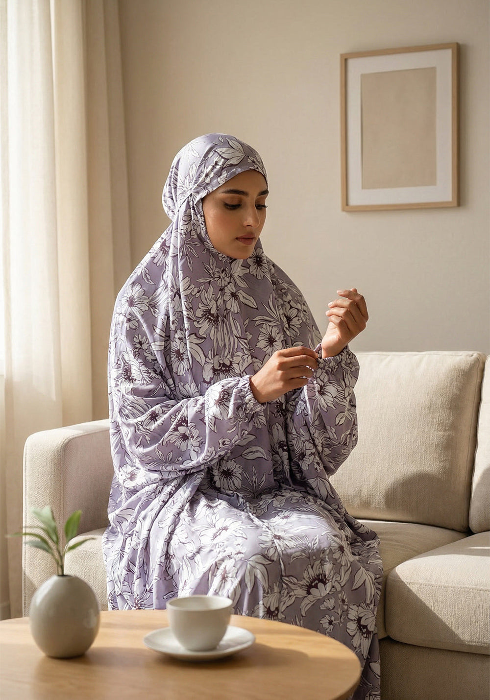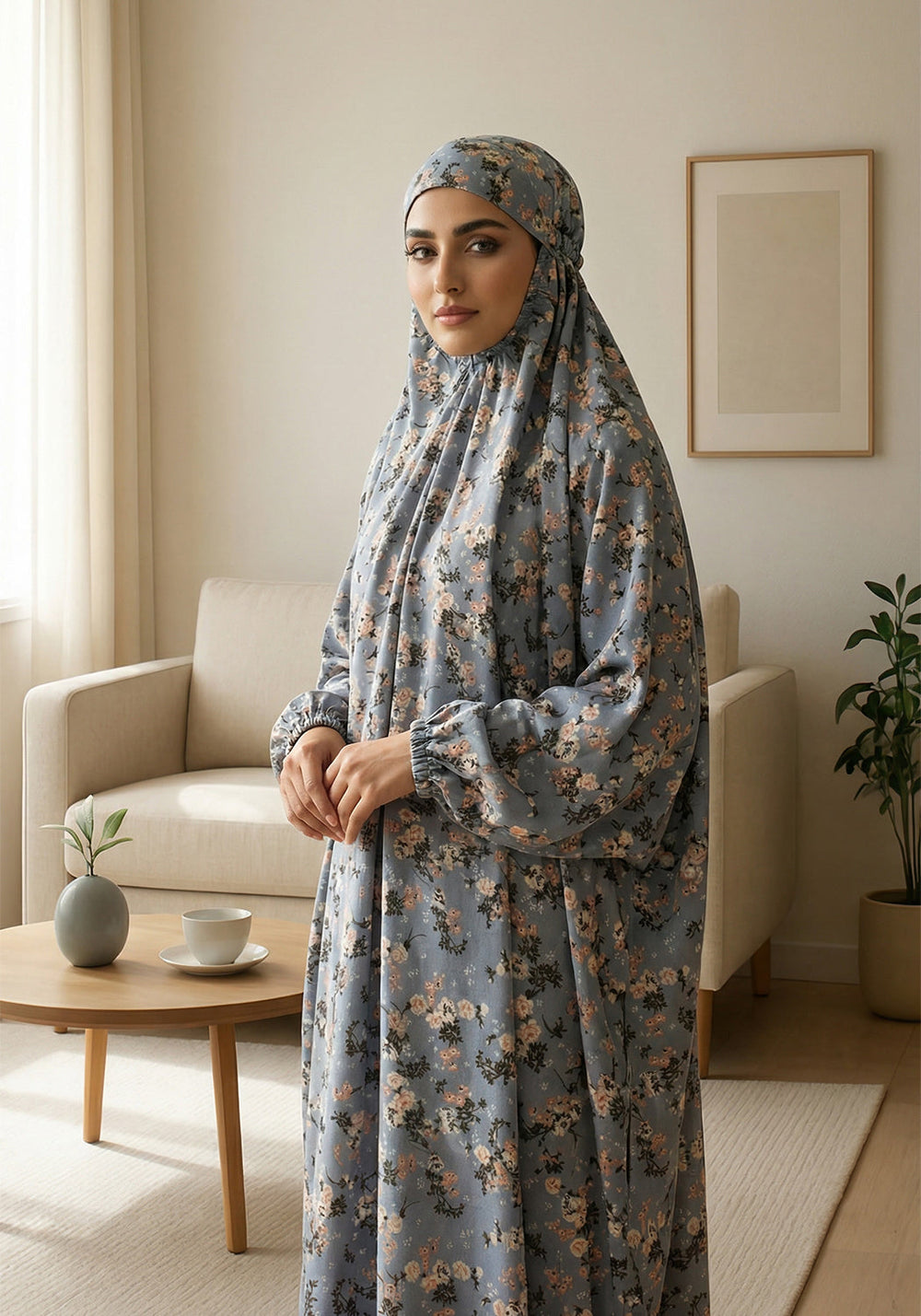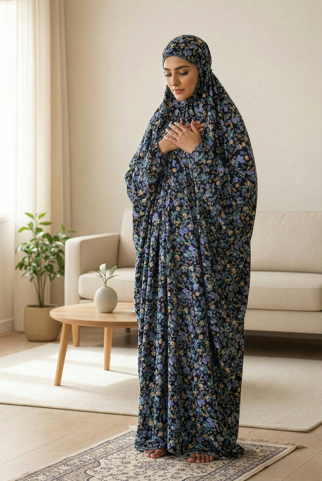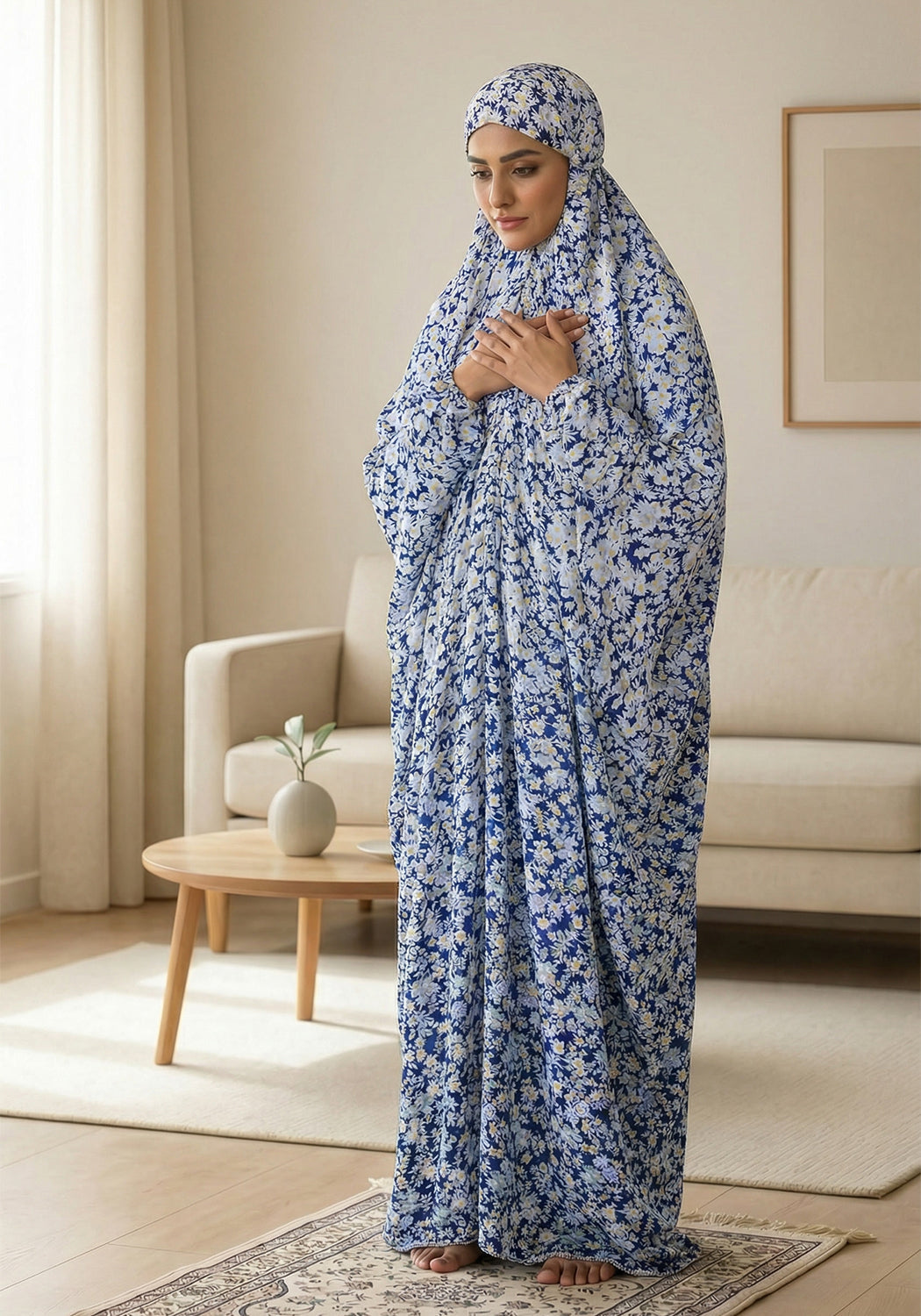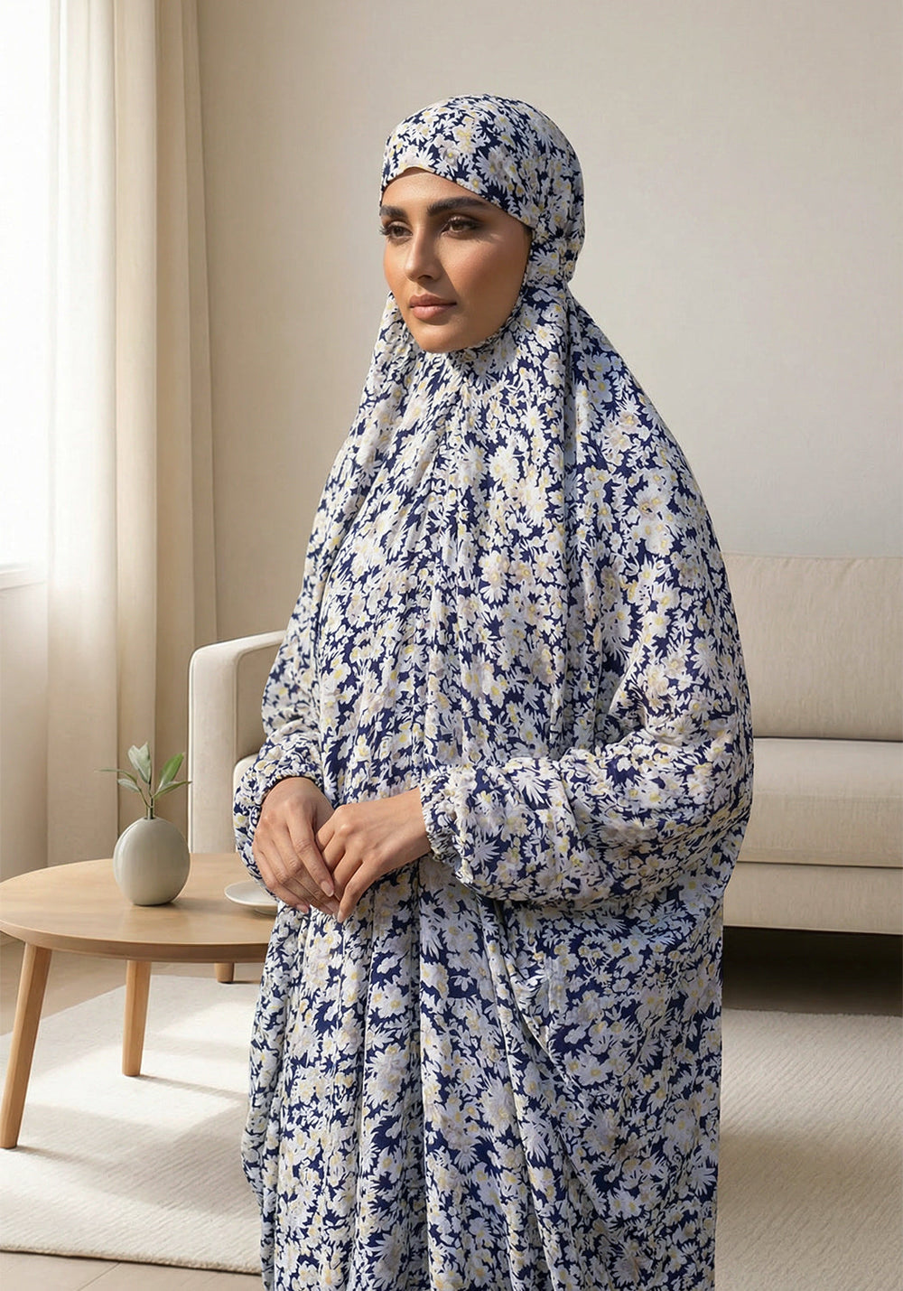 Printed Namaz Chadar - Navy Blue Jasmine Flower