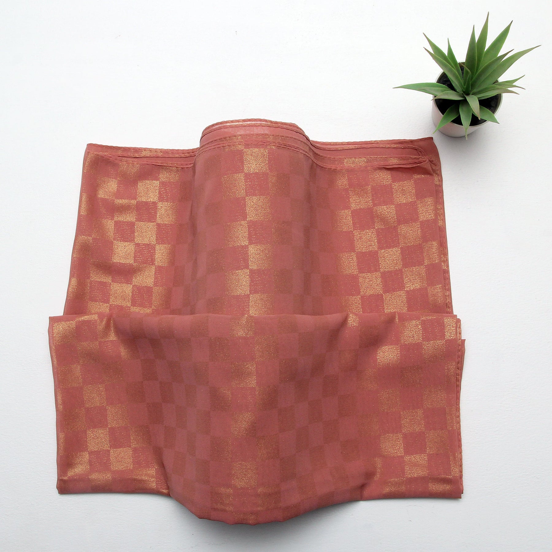 Elevate your everyday style with this elegant chiffon hijab featuring a subtle check pattern and delicate foil accents. Made from lightweight, breathable chiffon fabric, it drapes beautifully and offers all-day comfort.