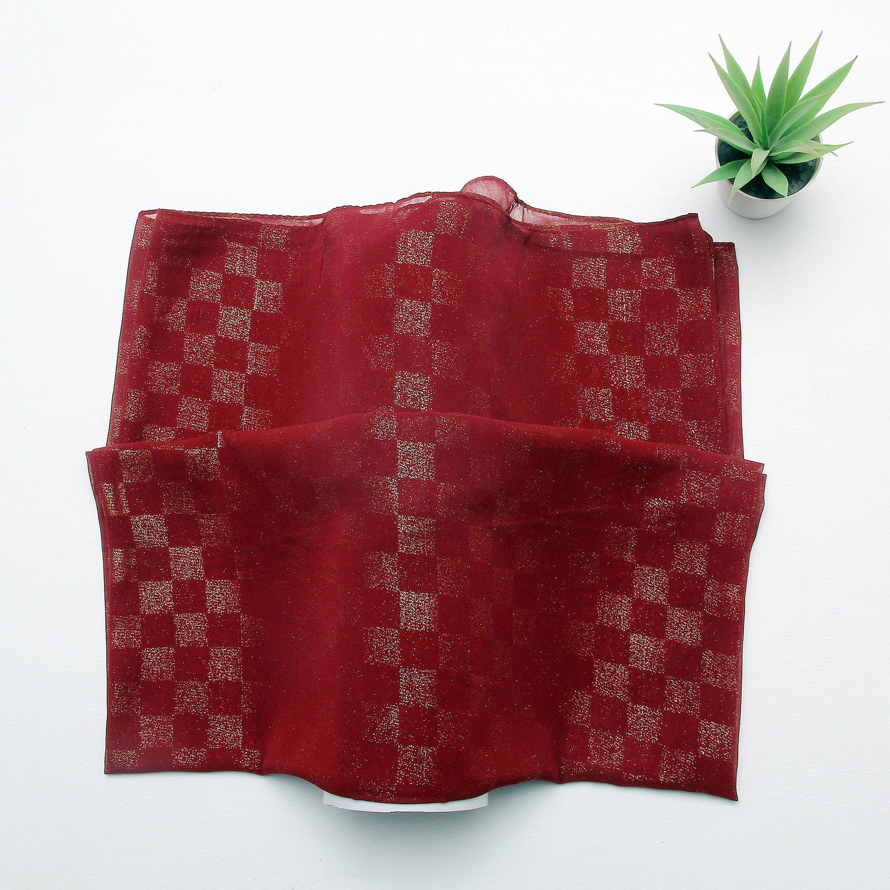 Chiffon Check Foil-Maroon