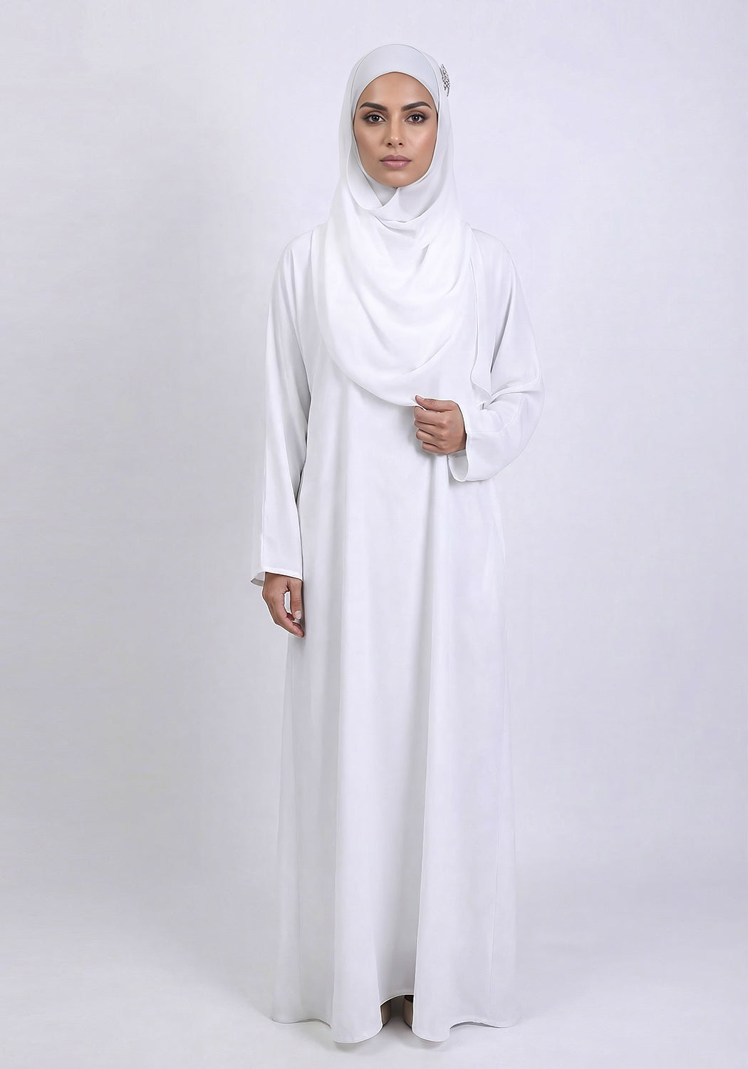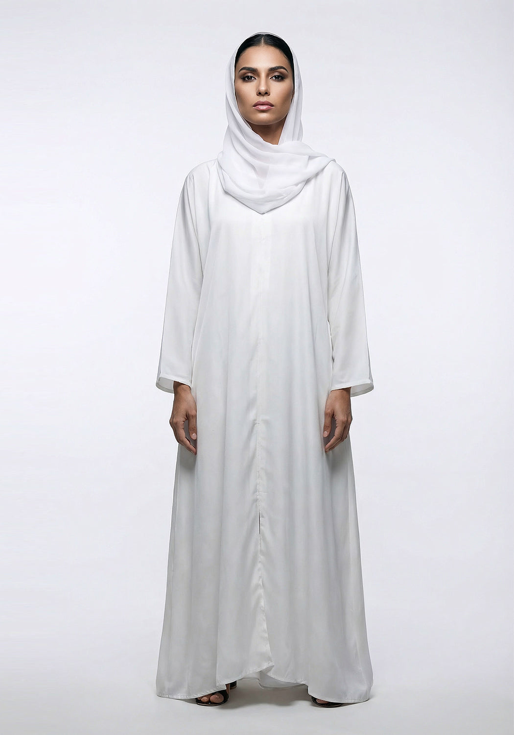 WHITE CLASSIC FRONT-CLOSED ABAYA Hijabi