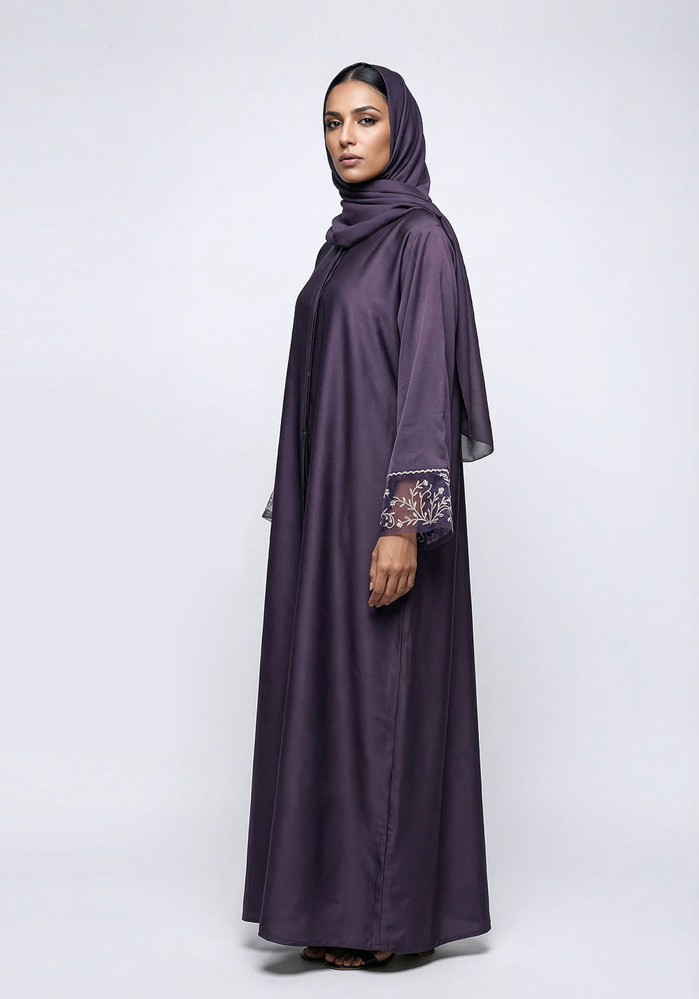 Purple Dabka Sleeves Abaya | Serene Threads