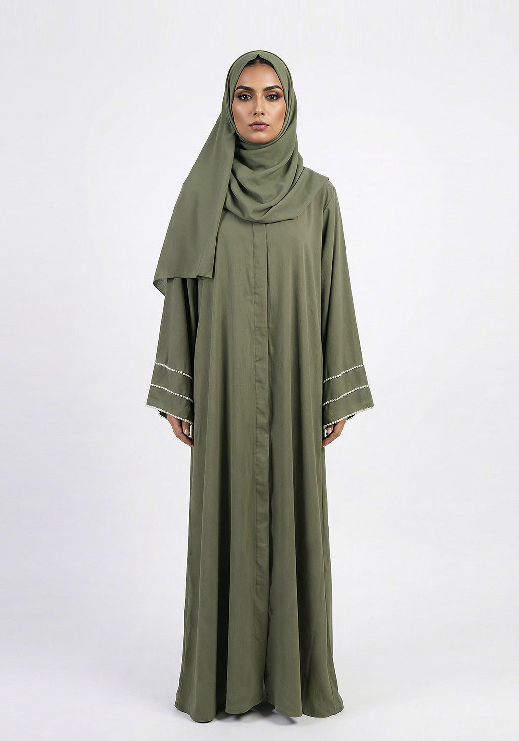 Olive Pearl Sleeve Abaya - Signature