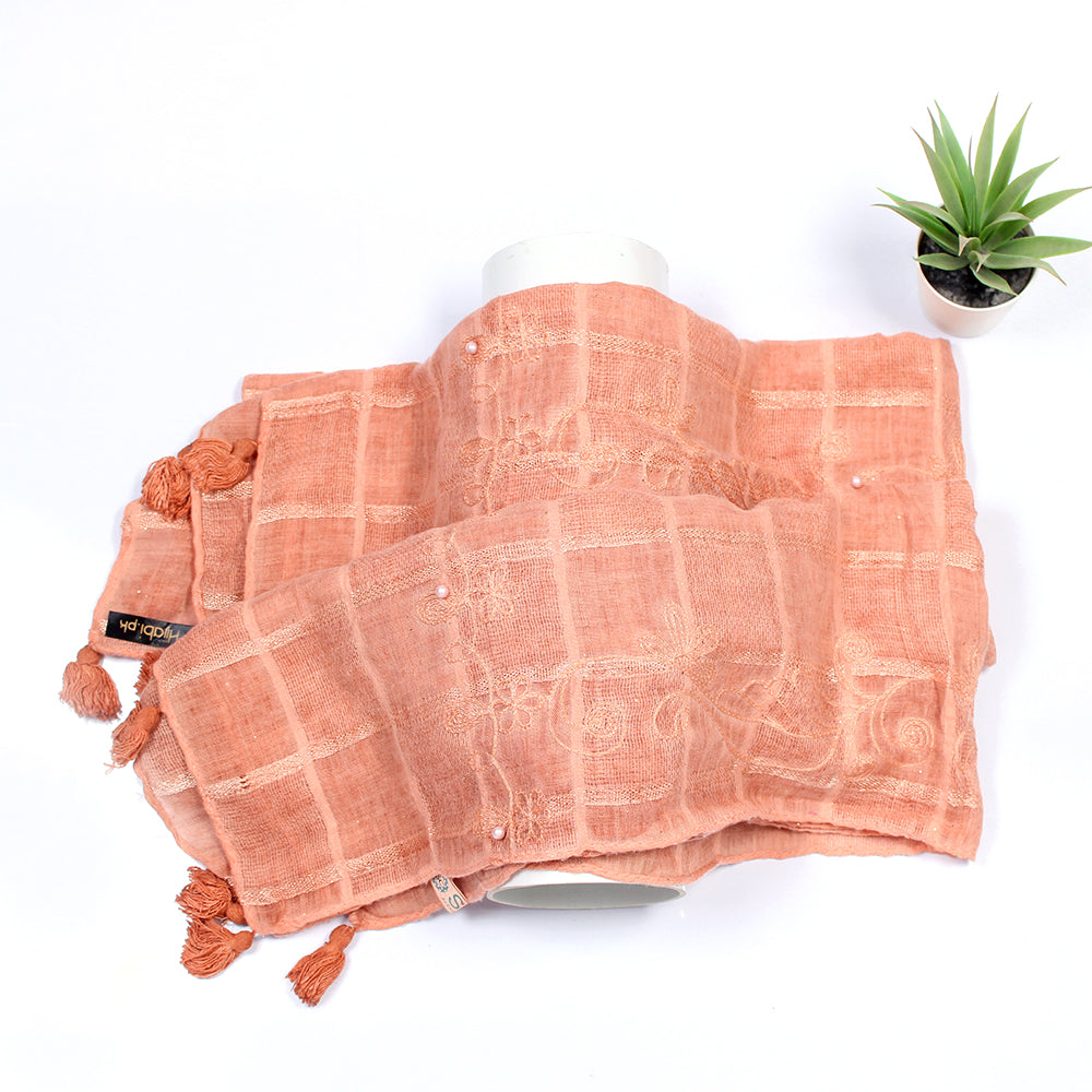 I'm a hijabi and I'm beautifully covered in pearls! Hijabi is a self-embroidered lawn hijab that's perfect for formal occasions or everyday wear. Made from lightweight fabric and scattered with beautiful pearls, these hijabs make the perfect hijab for a woman who wants something different.