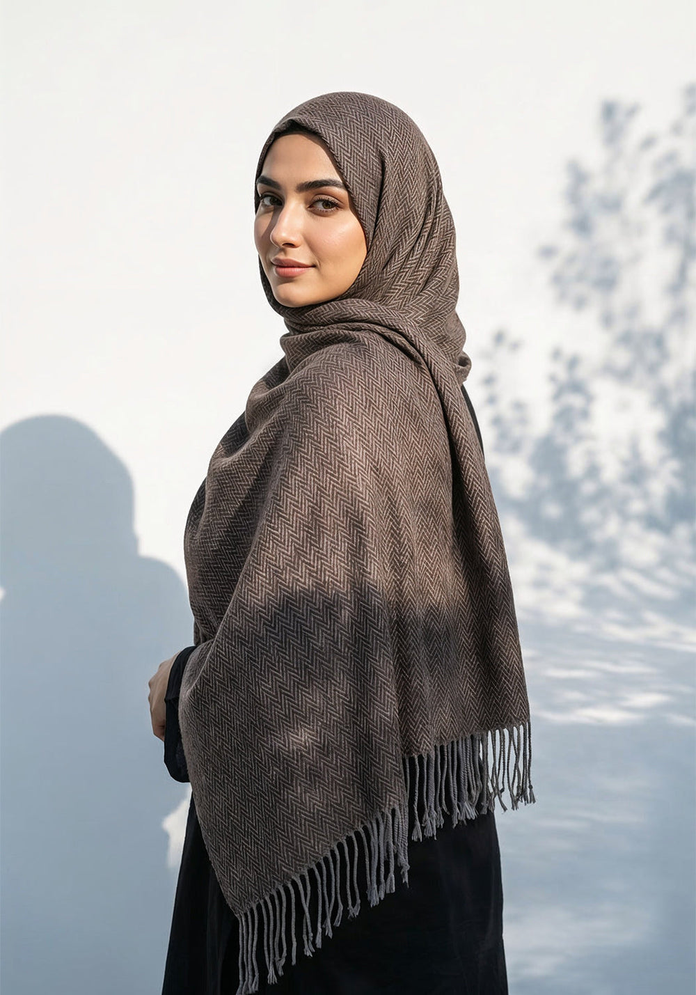 Palm Leaf Cashmere Hijab - Grey-Brown